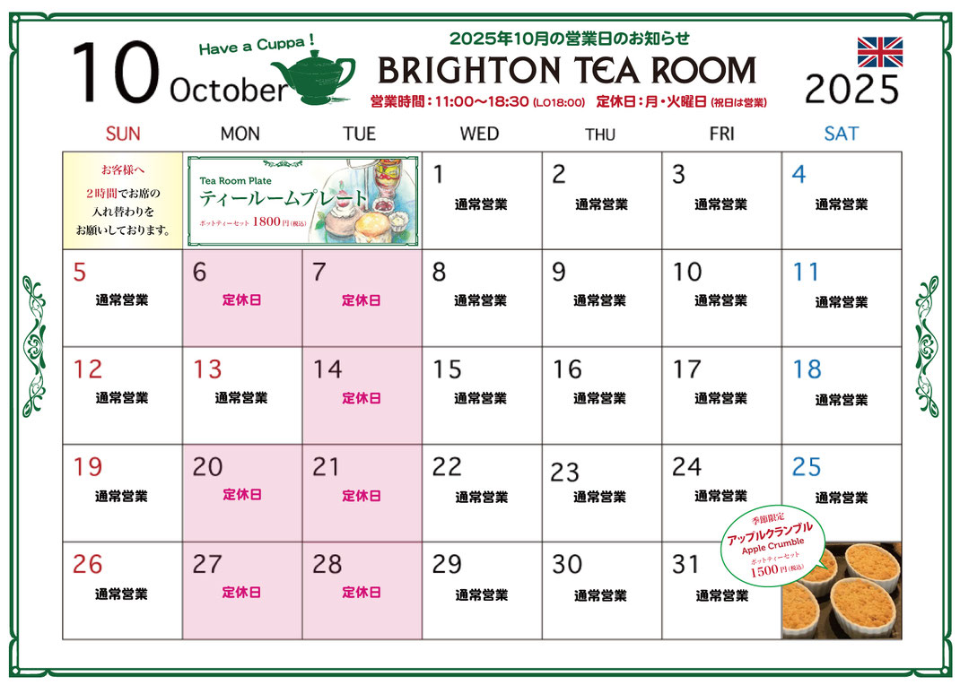 ブライトンティールームに是非お茶を飲みにいらして下さい。